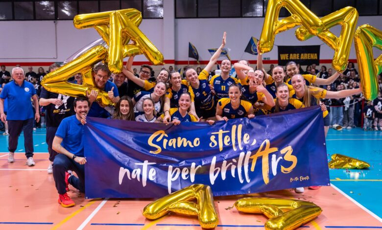 Da tredici anni la serie A di pallavolo femminile mancava da Verona, una provincia estremamente ricca come numero di società e di atlete del giovanile femminile. A centrare la promozione in serie A3 è stata la formazione SMAPIU’ Arena, una società attiva da molti anni nel settore giovanile e che da anni milita in serie B1, avendo sfiorato anche negli ultimi anni il passaggio in serie A. Ma quest’anno il risultato è stato raggiunto con quattro giornate di anticipo dal termine del campionato. Grazie alla vittoria nel derby veronese contro Cerea, con dodici punti di vantaggio da Schio, quarta in classifica, la compagni veronese può già festeggiare il passaggio di categoria grazie al maggiore numero di vittorie in stagione. Quattro sole le sconfitte subite in tutta la stagione, ben diciotto le vittorie già conquistate per un totale di 53 punti in classifica consentono ad Arena Volley la promozione diretta.